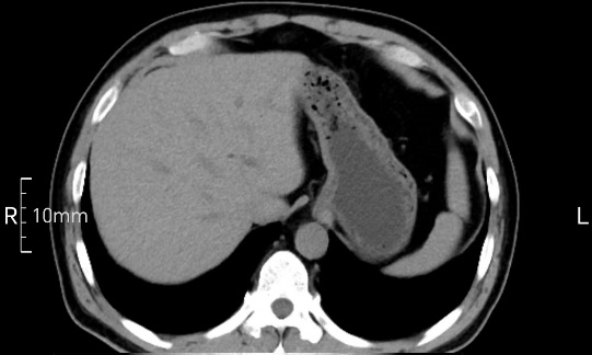 沒禁食,胃內(nèi)全是食物,導致胃壁顯示不清。