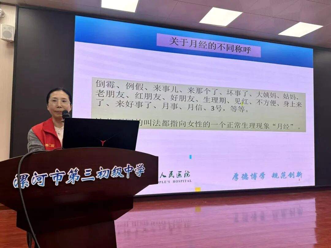 活動現(xiàn)場,婦產(chǎn)科主任井紅鴿從月經(jīng)的形成原理、周期變化,到日常護理的注意事項,用通俗易懂的語言,結(jié)合形象的圖示,讓女生們對自身的生理變化有了更深入地了解。特別強調(diào)了月經(jīng)是女性正常的生理現(xiàn)象,是成長過程中不可或缺的一部分,鼓勵女生們摒棄傳統(tǒng)觀念中的羞恥感,以積極的心態(tài)接納和面對。隨后,針對女生們在青春期可能遇到的生理和心理問題,醫(yī)護人員和志愿者們也給予了耐心地解答和專業(yè)的建議,得到了學(xué)校師生的一致好評。