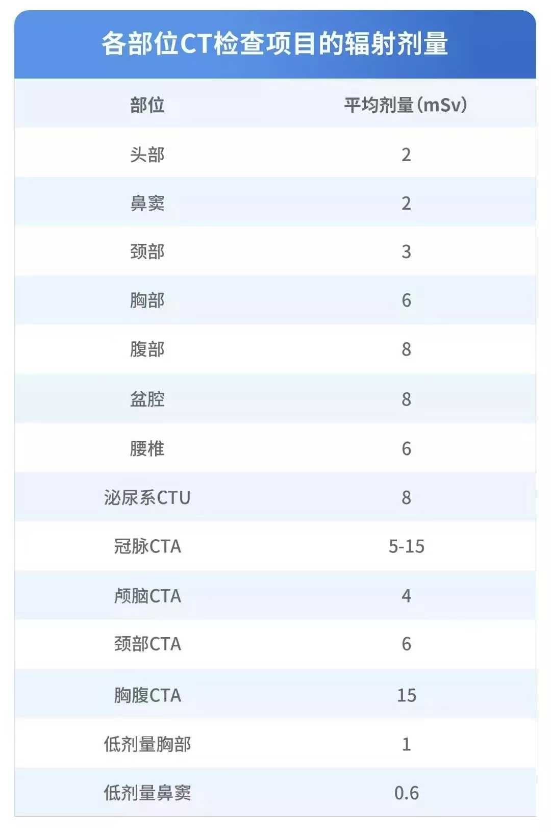 CT檢查劑量較普通X線高的多,成年人常規(guī)體檢及檢查不必過度擔(dān)心。各部位CT檢查項目輻射平均劑量根據(jù)部位不同輻射劑量不同:例如頭部一次CT接受輻射劑量大約2mSv,低劑量胸部檢查1-2mSv,腹部、盆腔大約6-8mSv。做一次頭部CT相當(dāng)于每日抽了20支煙。