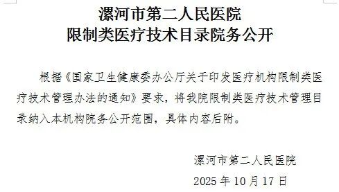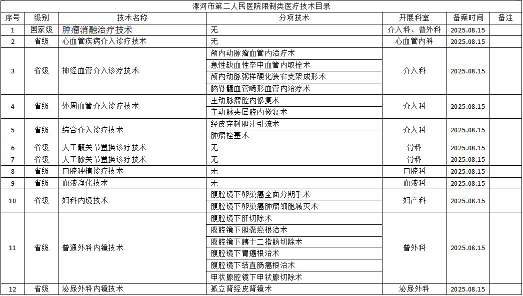 【公示】漯河市第二人民醫(yī)院限制類醫(yī)療技術(shù)目錄院務(wù)公開(kāi)