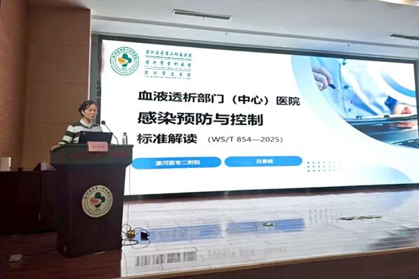 規(guī)范與賦能并重,夯實(shí)安全基石。 在質(zhì)量安全層面,漯河醫(yī)專(zhuān)二附院血液凈化室護(hù)士長(zhǎng)呂春曉對(duì)《血液透析部門(mén)(中心)醫(yī)院感染預(yù)防與控制標(biāo)準(zhǔn)》進(jìn)行了權(quán)威解讀,從建筑布局、人員管理、操作流程、監(jiān)測(cè)要求等多個(gè)方面,深入講解了標(biāo)準(zhǔn)的核心要點(diǎn),為各醫(yī)療機(jī)構(gòu)落實(shí)規(guī)范化管理、確?;颊甙踩峁┝艘罁?jù)。由漯河市婦幼保健院血液凈化室護(hù)士長(zhǎng)劉曉靜與臨潁縣人民醫(yī)院血液凈化室護(hù)士長(zhǎng)陳曉夢(mèng)主持會(huì)議。