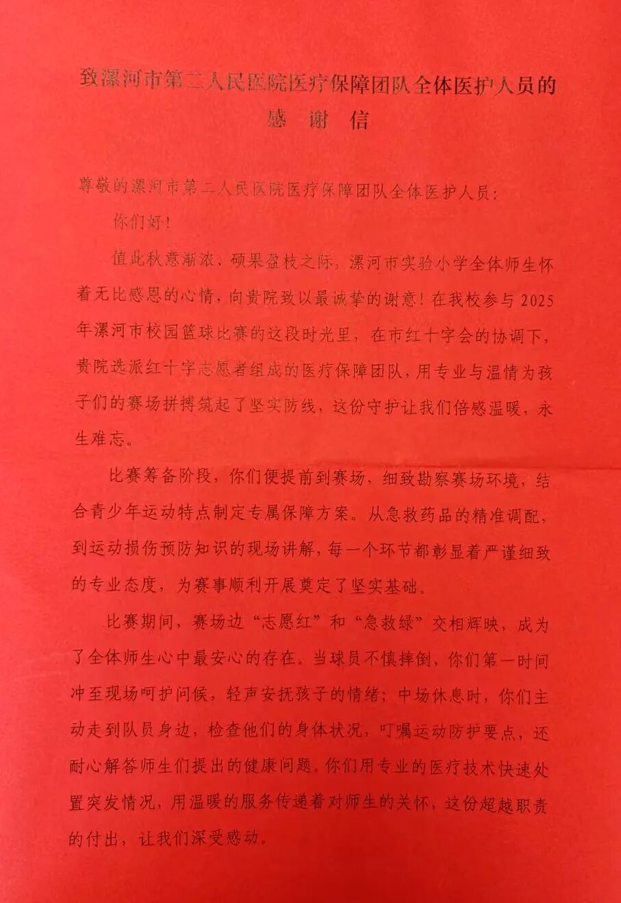 市紅十字會(huì)、市實(shí)驗(yàn)小學(xué)贈(zèng)送錦旗感謝信致謝漯河市二院