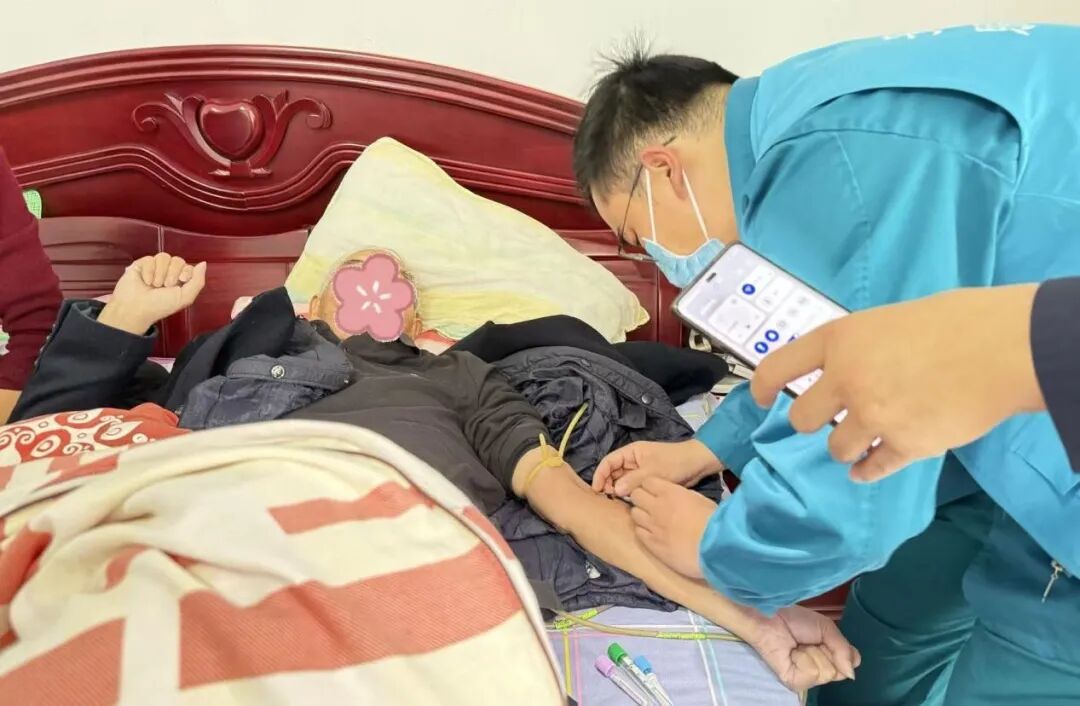 76歲的老人在外地接受膽管癌手術(shù)后返家休養(yǎng),身上仍攜帶兩根術(shù)區(qū)引流管。11月12日早上,家屬突然發(fā)現(xiàn)引流液呈血性,并緊急與主管醫(yī)生溝通后,醫(yī)生建議立即進(jìn)行血常規(guī)和凝血功能檢測(cè),明確病情變化。可該患者剛做完手術(shù),身體虛弱,行動(dòng)不便,往返醫(yī)院的路程對(duì)他來(lái)說(shuō)無(wú)疑是一種煎熬,焦急的家屬只好匆匆趕往漯河醫(yī)專二附院求助。急診科醫(yī)護(hù)人員幫助家屬通過(guò)“豫健護(hù)理到家”平臺(tái)完成下單操作,經(jīng)驗(yàn)豐富的陳笑寒護(hù)士長(zhǎng)與護(hù)士李鵬舉第一時(shí)間攜帶專業(yè)采血設(shè)備和護(hù)理包,火速趕往患者家中,緩解了患者與家屬的燃眉之急。(盧 闖 劉 旭 袁錦鈺)