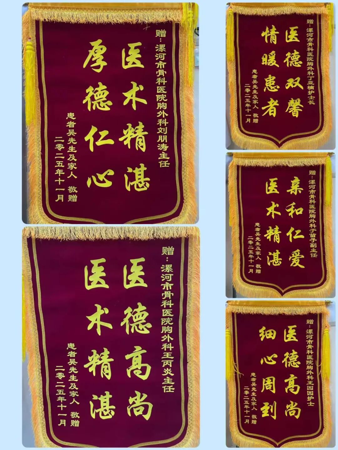 在住院期間特意送上五面錦旗