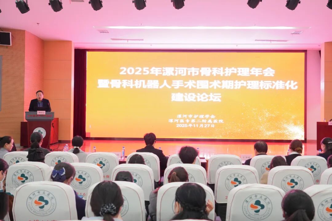 11月27日,由漯河市護(hù)理學(xué)會(huì)主辦、漯河醫(yī)專二附院(漯河市骨科醫(yī)院、漯河市立醫(yī)院)承辦的2025年漯河市骨科護(hù)理年會(huì)暨骨科機(jī)器人手術(shù)圍術(shù)期護(hù)理標(biāo)準(zhǔn)化建設(shè)論壇順利召開。本次會(huì)議聚焦骨科機(jī)器人圍術(shù)期護(hù)理前沿,匯聚省內(nèi)外專家、漯河市骨科專業(yè)委員會(huì)委員及各級醫(yī)療機(jī)構(gòu)護(hù)理骨干,共商學(xué)科發(fā)展藍(lán)圖,共促護(hù)理質(zhì)量提升。