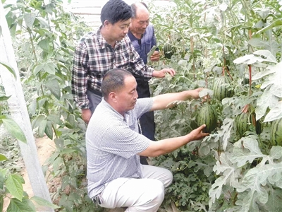 2009年,徐電超帶領(lǐng)一部分群眾成立了大徐村富農(nóng)瓜果蔬菜種植合作社,并先后組織群眾到外地參觀學(xué)習(xí),到山東壽光等地實(shí)地考察大棚種植情況,最后決定發(fā)展大棚西瓜和大棚蔬菜。當(dāng)時,村民不富裕,得知種植大棚西瓜每畝地需要投資1萬元,許多人猶豫了。徐電超講道理、舉例子,鼓勵村民,堅定了村民發(fā)展大棚瓜果、蔬菜的決心。