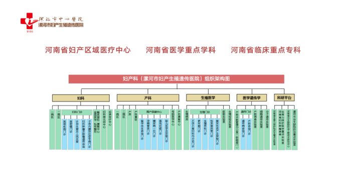 目前,國(guó)內(nèi)外大多數(shù)綜合醫(yī)院婦產(chǎn)科僅擁有婦科和產(chǎn)科兩個(gè)學(xué)科,而漯河市中心醫(yī)院擁有婦科、產(chǎn)科、生殖、遺傳4個(gè)學(xué)科。