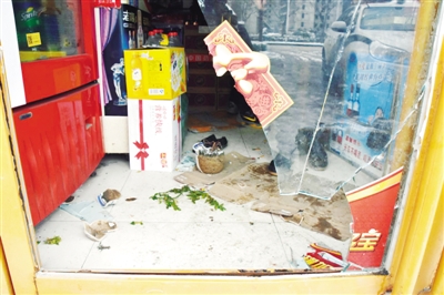 根據(jù)民警現(xiàn)場偵查,玻璃門上的大窟窿,是高近一米、寬半米多的不規(guī)則大洞。卷閘門也被人破壞,玻璃門口還有一盆破碎的花盆。超市收銀臺前被翻得亂七八糟,幾千元錢被偷,還有一些香煙被盜。“被盜的香煙都是好煙,中華、玉溪、芙蓉王、黃鶴樓等。”民警介紹說。