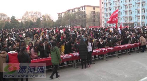 12月16號(hào),由市打傳辦、市文明辦、市綜治辦、市工商局等單位聯(lián)合組織的河南省高校“抵制傳銷 凈化校園 共創(chuàng)和諧”大學(xué)生萬人簽名活動(dòng)在漯河醫(yī)專舉行,來自我市各高校的大學(xué)生參加了活動(dòng)。