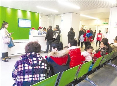 在服務(wù)臺(tái)前的液晶屏幕上,不斷滾動(dòng)顯示著專(zhuān)家名字和目前等待排隊(duì)就診的號(hào)碼,方便前來(lái)掛號(hào)的家長(zhǎng)選擇合適的醫(yī)生。家住召陵區(qū)翟莊辦事處龍?zhí)链宓内w芳,剛在服務(wù)臺(tái)給孩子約了排隊(duì)人數(shù)較少的就診醫(yī)生。“孩子感冒前兩天剛好,現(xiàn)在因?yàn)榉e食又有點(diǎn)兒發(fā)燒。我和我姐一大早就帶著孩子出門(mén)來(lái)到醫(yī)院看病。”趙芳說(shuō)。