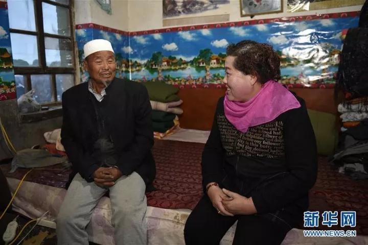 2016年10月27日,革命老區(qū)寧夏同心縣賀家塬村第一書記丁海燕(右)在貧困戶家中了解近況。 新華社記者 王鵬 攝