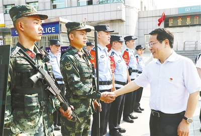 當(dāng)日,蒿慧杰先后來到市公安局聯(lián)合作戰(zhàn)指揮中心、泰山路與黃河路交叉口、火車站廣場,察看節(jié)假日期間值班、交通、治安等情況,并代表市委、市政府向節(jié)假日期間奮戰(zhàn)在一線的公安干警致以親切的問候。