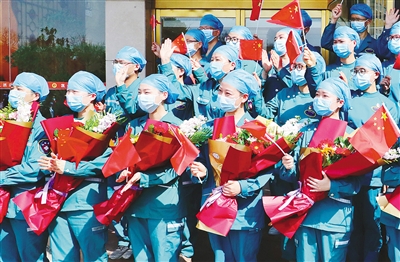 市委書(shū)記蒿慧杰在歡迎儀式上動(dòng)情地說(shuō),鞭敲金蹬響,齊唱?jiǎng)P歌還。聽(tīng)到白衣戰(zhàn)士們高唱“五星紅旗迎風(fēng)飄揚(yáng),勝利歌聲多么嘹亮”,我們更加深切地體會(huì)到,在抗擊災(zāi)難中黨的偉大、祖國(guó)的偉大、人民的偉大。看到抗疫勇士們從最前沿勝利歸來(lái)、平安到家,我們和你們的家人一樣,非常高興。我代表市委、市人大、市政府、市政協(xié)和市疫情防控指揮部,向你們以及支持你們奔赴抗疫第一線的家人表示衷心的感謝和崇高的敬意!代表全市人民為你們點(diǎn)贊,歡迎你們回家!