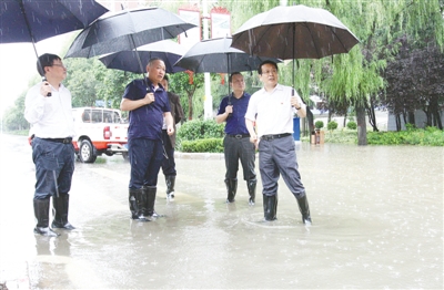 7月22日,市委書記蒿慧杰察看指導(dǎo)市區(qū)積水點排水和防汛工作。本報記者 王慶建 攝