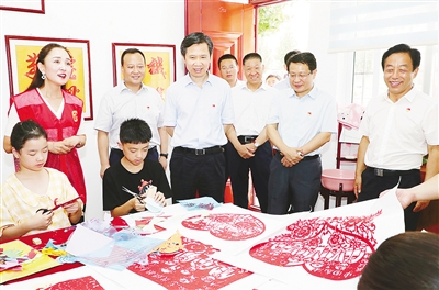 8月5日,省委常委、宣傳部部長江凌在舞陽縣調研新時代文明實踐中心陣地建設和志愿服務活動開展情況。