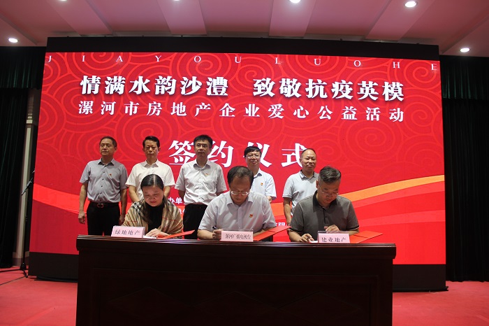 活動(dòng)現(xiàn)場(chǎng),河南建業(yè)集團(tuán)、綠地控投集團(tuán)等房地產(chǎn)企業(yè)代表簽訂了愛(ài)心公益活動(dòng)合作協(xié)議。