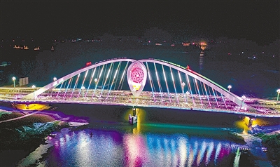 夜色下的牡丹江路大橋。記者 焦海洋 攝