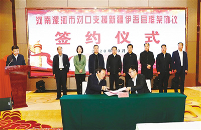 10月26日,市委書記蒿慧杰等出席我市對(duì)口支援新疆伊吾縣框架協(xié)議簽約儀式。記者 王慶建 攝