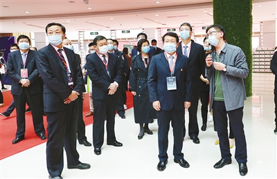 11月1日,市四大班子領(lǐng)導(dǎo)帶領(lǐng)市直相關(guān)部門負(fù)責(zé)同志察看第十八屆中國(漯河)食品博覽會展館。本報記者 王慶建 攝