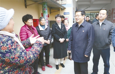11月25日,市委書(shū)記蒿慧杰在二針家屬院小區(qū)調(diào)研新時(shí)代文明實(shí)踐點(diǎn)建設(shè)情況,并與居民親切交談。記者 王慶建 攝