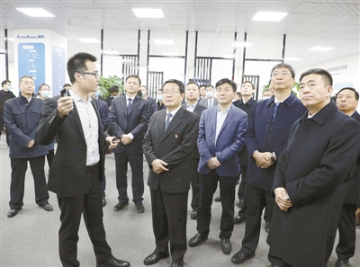 11月30日上午,市委書記蒿慧杰、市長劉尚進(jìn)與來賓一起參觀中原鯤鵬創(chuàng)新中心漯河分中心等平臺。