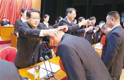 12月22日,市領(lǐng)導(dǎo)蒿慧杰、劉尚進(jìn)等為受表彰的先進(jìn)個(gè)人、先進(jìn)集體和優(yōu)秀共產(chǎn)黨員、先進(jìn)基層黨組織代表頒獎(jiǎng)。記者 王慶建 攝