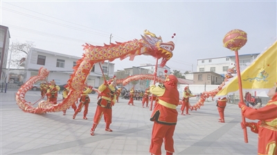 “民間藝術(shù)夕陽(yáng)紅”舞龍隊(duì)正在排練。