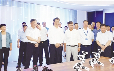 7月25日,市委書記劉尚進帶隊在源匯區(qū)英米科技-5G智能制造產(chǎn)業(yè)園觀摩。記者 胡鴻麗 攝