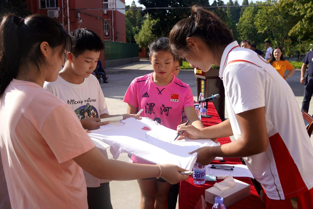 在漯河體校,呂揚(yáng)將自己的比賽戰(zhàn)衣贈(zèng)予學(xué)校,并為學(xué)弟學(xué)妹們簽名。