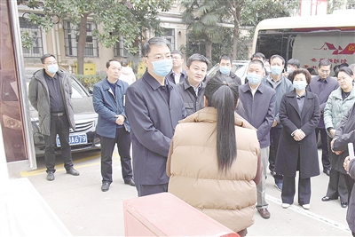 12月15日,市委書(shū)記劉尚進(jìn)等在召陵區(qū)天橋街道漓江路社區(qū)與工作人員交談。記者 胡鴻麗 攝