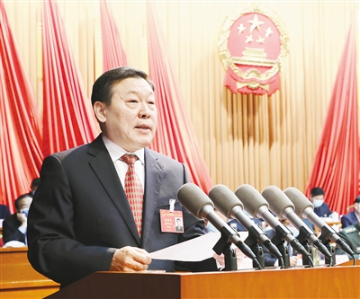 2月23日,市人大常委會主任李思杰在市七屆人大八次會議上作市人大常委會工作報告。 記者 張 佩 攝