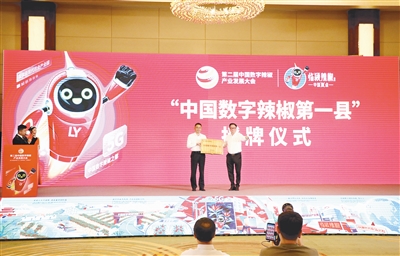 第二屆中國數(shù)字辣椒產(chǎn)業(yè)發(fā)展大會(huì)上,中國蔬菜流通協(xié)會(huì)正式將“中國數(shù)字辣椒第一縣”牌匾授予臨潁縣。記者 范子恒 攝