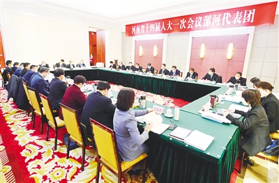 1月14日下午,出席省十四屆人大一次會(huì)議的漯河代表團(tuán)召開(kāi)第二次全體會(huì)議,審議省政府工作報(bào)告,審查計(jì)劃報(bào)告、預(yù)算報(bào)告及相關(guān)草案。記者 胡鴻麗 攝