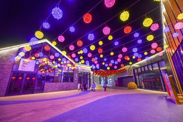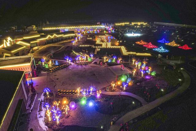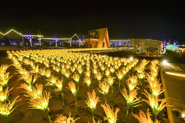 隨著夜幕降臨,園區(qū)內(nèi)開啟了夜景燈光秀,到處燈光璀璨、流光溢彩,處處洋溢著歡樂、喜慶的節(jié)日氣氛,呈現(xiàn)出一番別樣的美感,令人流連忘返。采訪中,記者看到進(jìn)入園區(qū)的游客不時(shí)拍照、留念。“不管是環(huán)境還是設(shè)施都不錯(cuò),孩子們玩得很開心,不愿意走。”正在兔子造型展板前給孩子拍照的邢貝貝說,她家在臨潁縣皇帝廟鄉(xiāng)商橋村,聽說園區(qū)即將開門迎客,她迫不及待地前來游玩。春節(jié)期間,她準(zhǔn)備約著親朋,帶著孩子們再來玩。