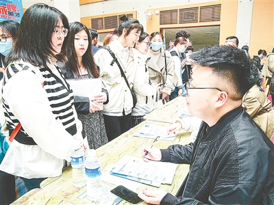 招聘單位代表與畢業(yè)生現(xiàn)場交流互動。