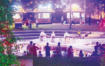 沙灘酒吧、“漯河宴”音樂(lè)餐吧、咖啡廳、微醺小酒館,美食業(yè)態(tài)延伸發(fā)展,吸引眾多市民前來(lái)拍照打卡、品嘗特色美食;
