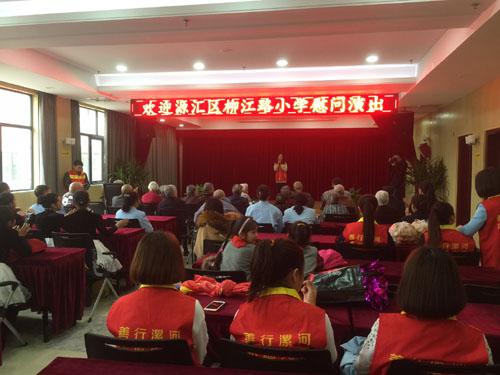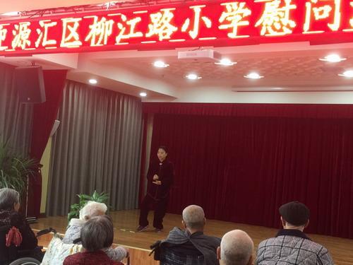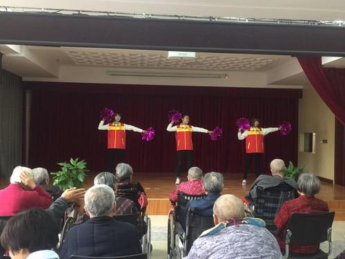 上午9:00志愿者們準(zhǔn)時(shí)抵達(dá)老年公寓,在老年公寓的會(huì)議廳志愿者們?yōu)槔先藗儷I(xiàn)上了精心準(zhǔn)備的節(jié)目,老師的武術(shù)表演、歌曲、舞蹈贏得了老人們的陣陣掌聲,逗得老人們開(kāi)懷大笑。看到老人們幸福的笑臉,志愿者們感到莫大的欣慰與喜悅。演出結(jié)束后,志愿者同護(hù)理人員一起把老人們護(hù)送到他們的房間,黨員志愿者們和老人們親切交流,幫助老人整理房間,打掃衛(wèi)生,給老人梳洗、剪指甲,和老人們聊家常,關(guān)切的詢問(wèn)他們的身體狀況和目前的生活狀況,并把給老人們帶去的糕點(diǎn)一一送到老人手中。