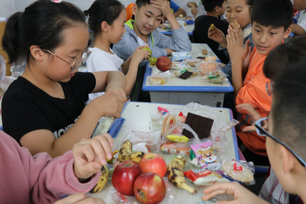 第二部分是“濃情相伴、愛在中秋”中秋節(jié)分享會活動。同學(xué)們朗誦著歌頌中秋節(jié)的古詩、唱著中秋節(jié)的歌曲。伴隨著“月餅圓圓甜又香……”的歌聲,分享會開始啦,瞧!每個孩子的臉上都綻放著開心的笑容,孩子們將帶來的月餅、零食整齊地?cái)[放在餐盤里,相互觀賞著,接著紛紛介紹:“我的月餅是圓形的,是草莓味的。”“我的月餅是正方形的,是豆沙味道的。”“我的蘋果可甜了。”“我還帶了火腿腸……”通過小組合作,孩子們把愛心家長自愿提供的月餅,獻(xiàn)給敬愛的老師、親愛的同學(xué)們!同學(xué)們你喂我一口,我吃你一塊兒,開心極了!孩子們分享著月餅,更分享著快樂……千言萬語,道不盡孩子們的聲聲祝福,傳統(tǒng)文化,洗禮著一顆顆幼小的心靈。整個校園沉浸在濃濃節(jié)日氛圍之中?;顒釉谳p松愉悅的氣氛中圓滿落下帷幕,孩子們度過一個意義非凡,情伴中秋的主題活動日,收獲滿滿。