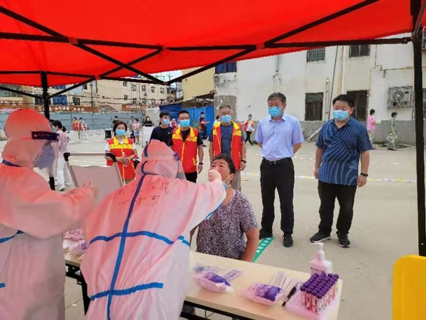 源匯區(qū)建立分包聯(lián)系制度,全區(qū)縣級領導干部分包鄉(xiāng)鎮(zhèn)、街道辦,深入檢測點一線指導督導,區(qū)直各單位黨員干部下沉各檢測采集點開展志愿服務,鄉(xiāng)鎮(zhèn)、街道、社區(qū)(村)干部精心組織,落實責任,廣大醫(yī)護人員聞令而動,領命出征,全區(qū)出臺《關(guān)于在疫情防控中進一步發(fā)揮基層黨組織戰(zhàn)斗堡壘作用和廣大黨員先鋒模范作用的通知》,廣大干群斗志昂揚,全區(qū)各級黨員干部凝心聚力一盤棋,迅速投入這場沒有硝煙的戰(zhàn)爭。