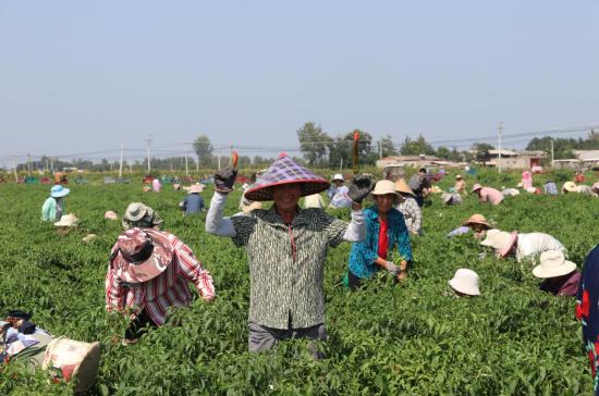 在第四屆“中國農民豐收節(jié)”即將來臨之際,河南省漯河市臨潁縣王孟鎮(zhèn)石拐村種植了800畝大辣椒和線辣椒,取得了大豐收,解決了附近200多戶農村婦女就業(yè),促進了當?shù)亟?jīng)濟的快速發(fā)展。