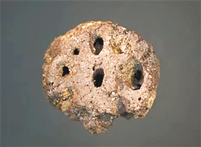 蓮。賈湖遺址浮選出土的蓮藕遺存有76件(塊),其中保存好的還可看到完整的橫切面,上面均勻分布著8到10個(gè)氣孔,與現(xiàn)代栽培藕在形態(tài)特征上完全一致,但相對(duì)較細(xì),可能是野生蓮藕。