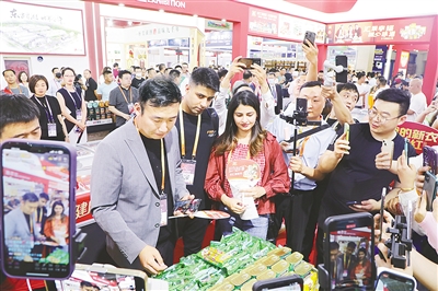 網(wǎng)紅主播“小飛”參與食博會帶貨活動。記者 范子恒 攝