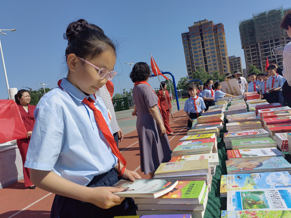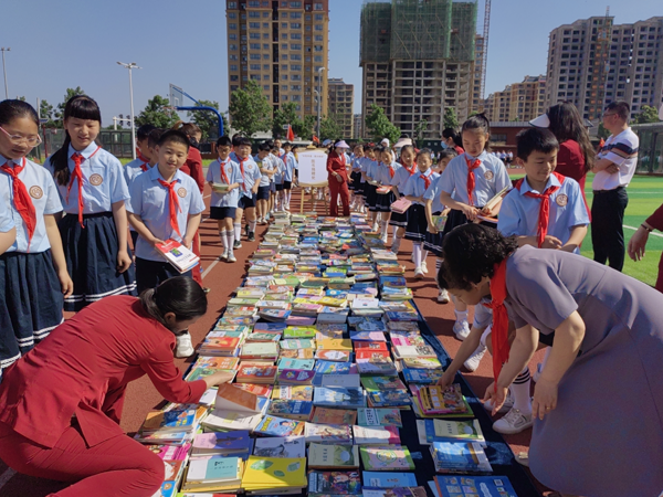5月17日上午,漯河市郾城小學(xué)操場上熱鬧非凡,漯河市2023年“紅色傳遞•接力閱讀”圖書漂流第一站在這里舉辦,1000多名學(xué)生參加了圖書漂流活動,開啟傳播書香的環(huán)市接力,引領(lǐng)充滿天真童趣的閱讀時尚。