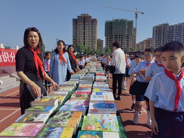 郾城小學(xué)校長田秋萍說:“活動即教育!一次活動就是一次德育教育,就是一堂生動的德育教育課。紅色旗幟代代相傳是我們學(xué)校的黨建品牌,在團隊建設(shè)中發(fā)揮引領(lǐng)作用。讀紅色書籍活動貫穿德育教育始終,通過這樣的德育課堂,孩子們用愛心送出一本書,傳出一份情,成就一個夢。讓閱讀傳播愛國愛黨的情懷,讓“紅色故事”書籍飄逸沙澧大地。”