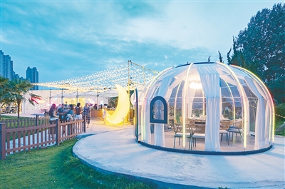 在金沙灘充滿熱帶風(fēng)情的棕櫚樹掩映下,漯河宴、漯河食品展覽館、悅咖啡廳顯得夢幻唯美、優(yōu)雅時尚