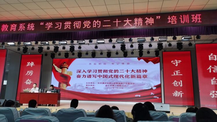 為了深入學(xué)習(xí)貫徹黨的二十大精神,引領(lǐng)激勵(lì)廣大教師聽黨話、感黨恩、跟黨走,奮斗新時(shí)代,奮進(jìn)新征程,2023年7月19日,源匯區(qū)雙龍小學(xué)全體黨員參加源匯區(qū)教育系統(tǒng)學(xué)習(xí)貫徹黨的二十大精神培訓(xùn)班學(xué)習(xí),認(rèn)真聆聽了王玨教授講授的《深刻領(lǐng)會(huì)三個(gè)務(wù)必 走好新時(shí)代趕考路》和毛志凌教授講授的《以中國(guó)式現(xiàn)代化 全面推進(jìn)中華民族偉大復(fù)興》的報(bào)告,牢牢把握黨的二十大精神的豐富內(nèi)涵和新要求,切實(shí)做到學(xué)深悟透,融會(huì)貫通。