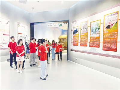 在市城市展示館講解員的帶領(lǐng)下,實(shí)踐團(tuán)成員通過場(chǎng)景復(fù)原、實(shí)物沙盤等,了解了我市從9000年前的“賈湖文明”到今日“中華漢字文化名城”“中國(guó)食品名城”的發(fā)展變化。