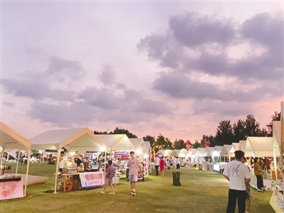 7月9日傍晚,熱鬧的紅楓廣場(chǎng)消夏市集。