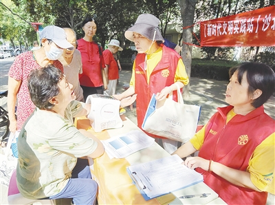 志愿者在給居民測(cè)量血壓。記者 張麗霞 攝