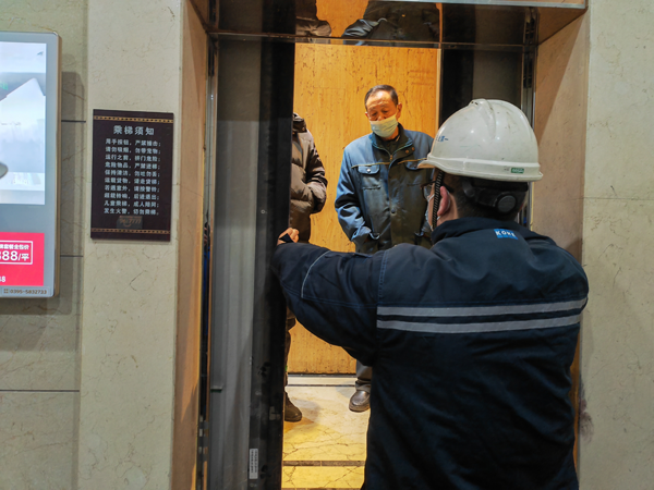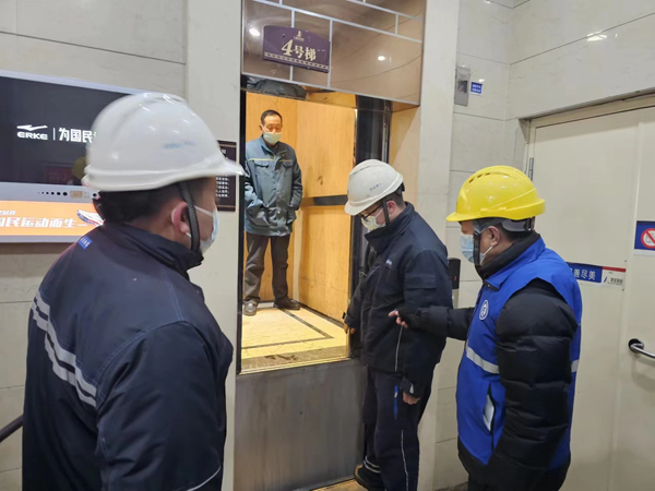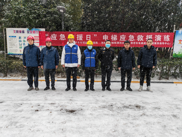 演練中,通過模擬電梯在降雪冰凍等惡劣天氣停電出現(xiàn)電梯困人事故。被困人員通過撥打96333電梯應(yīng)急救援電話向市電梯應(yīng)急處置中心進(jìn)行求救,中心接警人員立即指派電梯所屬維保單位維保人員前往救援,現(xiàn)場安全解救被困人員,及時(shí)排除電梯故障,最后對電梯全面檢查后恢復(fù)正常運(yùn)行。